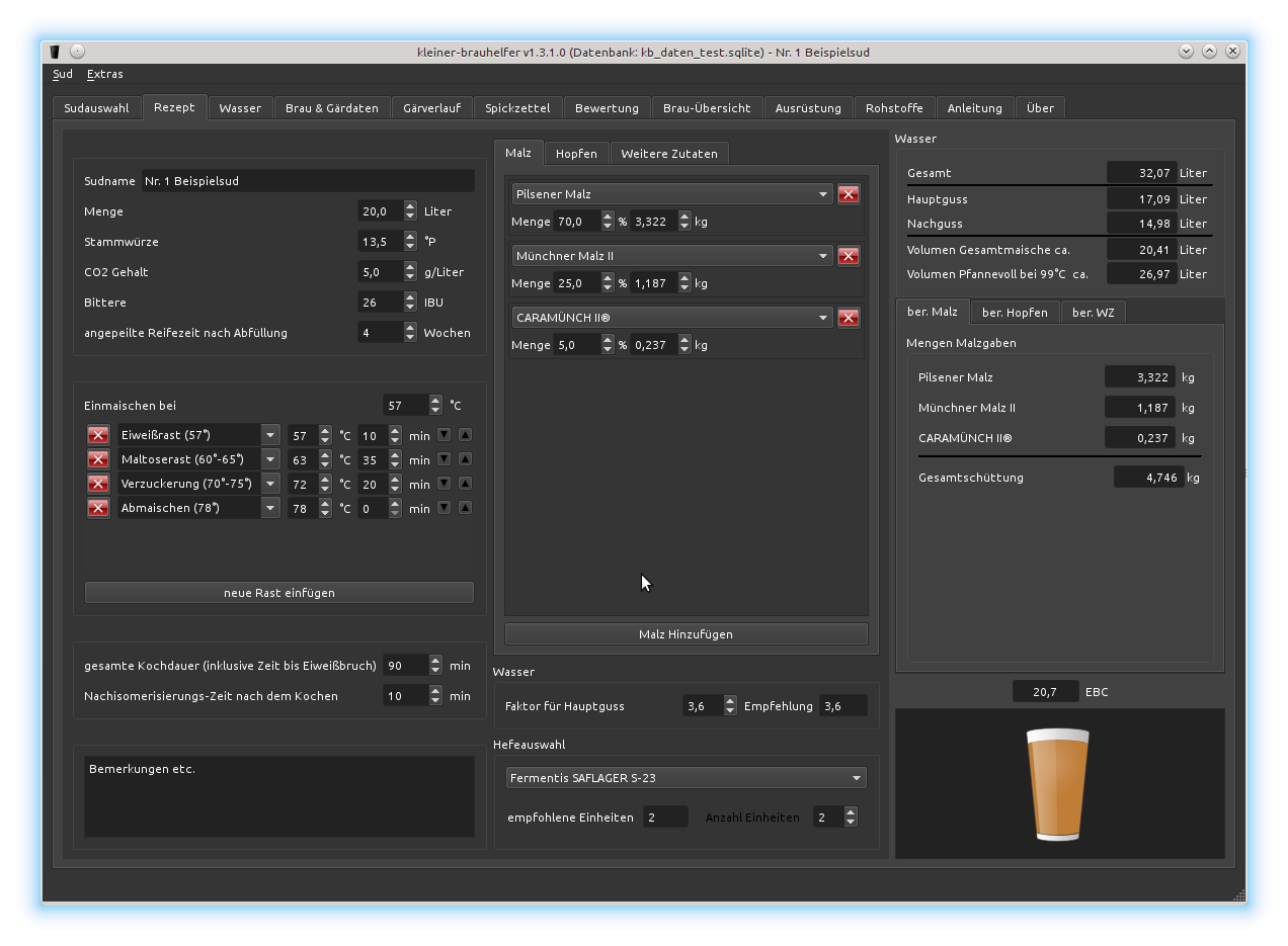 Da nicht klar erkenntlich war das die Funktionen unter Extras nur auf den aktuell geladenen Sud Auswirkung haben sind die Funktionen nun im Menüpunkt “geladener Sud„ zu finden.