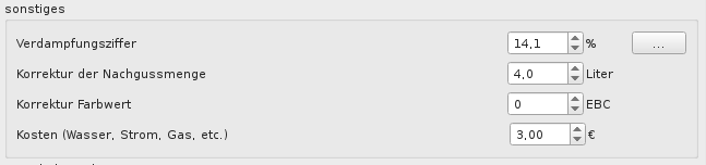 Ist die Verdunstungsziffer ermittelt und es stimmt die Pfannevollmenge nach dem Läutern nicht kann dies hier korrigiert werden.