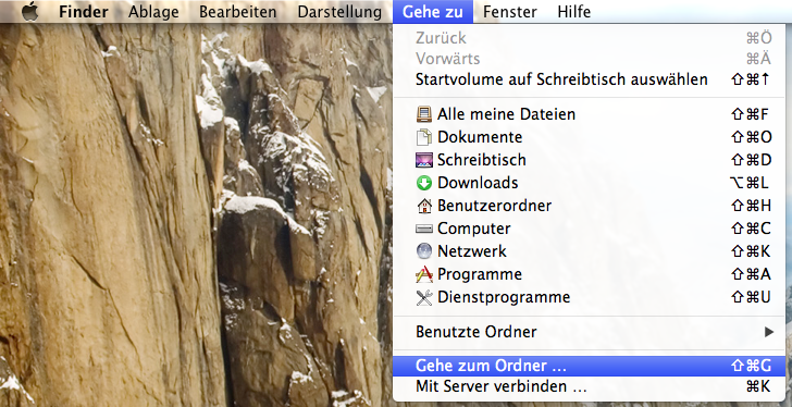 Im Finder auf Gehe zu → Gehe zum Ordner klicken