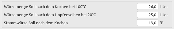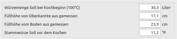 Hier werden Mengen und Stammwürze eingetragen, die am Brautag erzielt wurden.