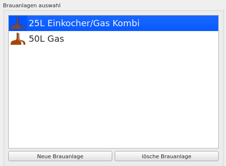 ab v1.4.0.0Hier wird die Brauanlage ausgewählt.