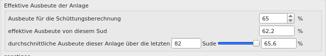 Hier wird vom aktuell geladenen Sud die erreichte effektive Ausbeute angezeigt.