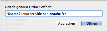und den richtigen Pfad eingeben: /Users/$benutzer/.kleiner-brauhelfer